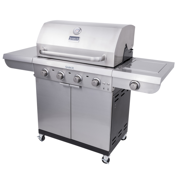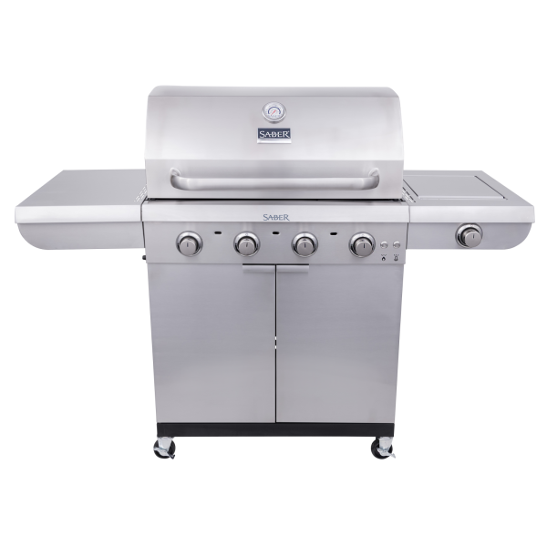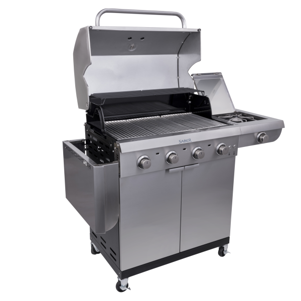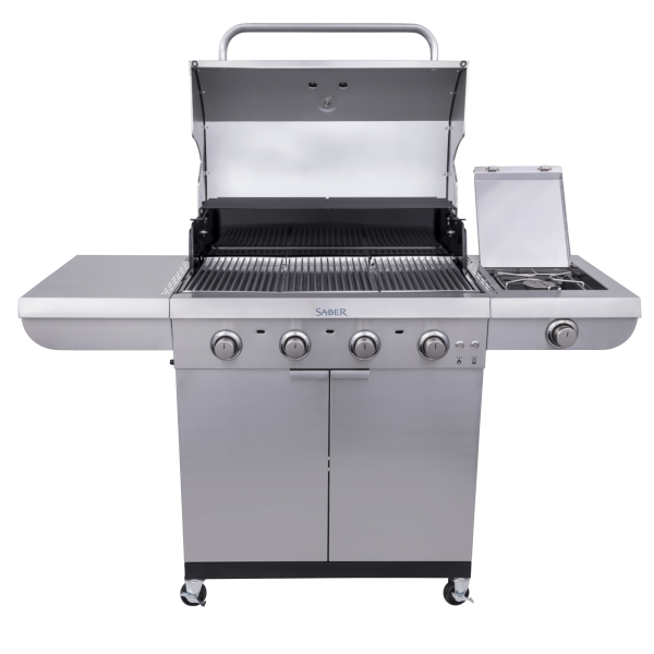 Le barbecue à gaz SABER® Select à 4 brûleurs capture les saveurs pour des résultats juteux et parfaits. Son système de cuisson exclusif est conçu pour chauffer la surface du grill de manière uniforme et éliminer les flambées une fois pour toutes. Construit avec des matériaux de haute qualité pour une durabilité optimale, ce barbecue élégant offre une grande surface de cuisson avec des grilles en acier inoxydable de qualité professionnelle et un brûleur latéral pour une polyvalence accrue. Une large étagère latérale permet de garder les outils et les épices à portée de main pendant la cuisson, et se replie pour faciliter le rangement. Des lumières LED bleues ajoutent une touche sophistiquée, et un meuble fermé permet de stocker vos accessoires en toute sécurité.